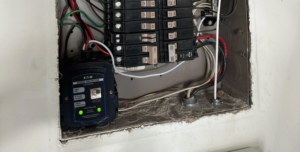 Prevent costly damage to appliances and electronics with whole-home or panel-mounted surge protection. Our systems shield your property from storms, grid surges, and sudden voltage spikes.